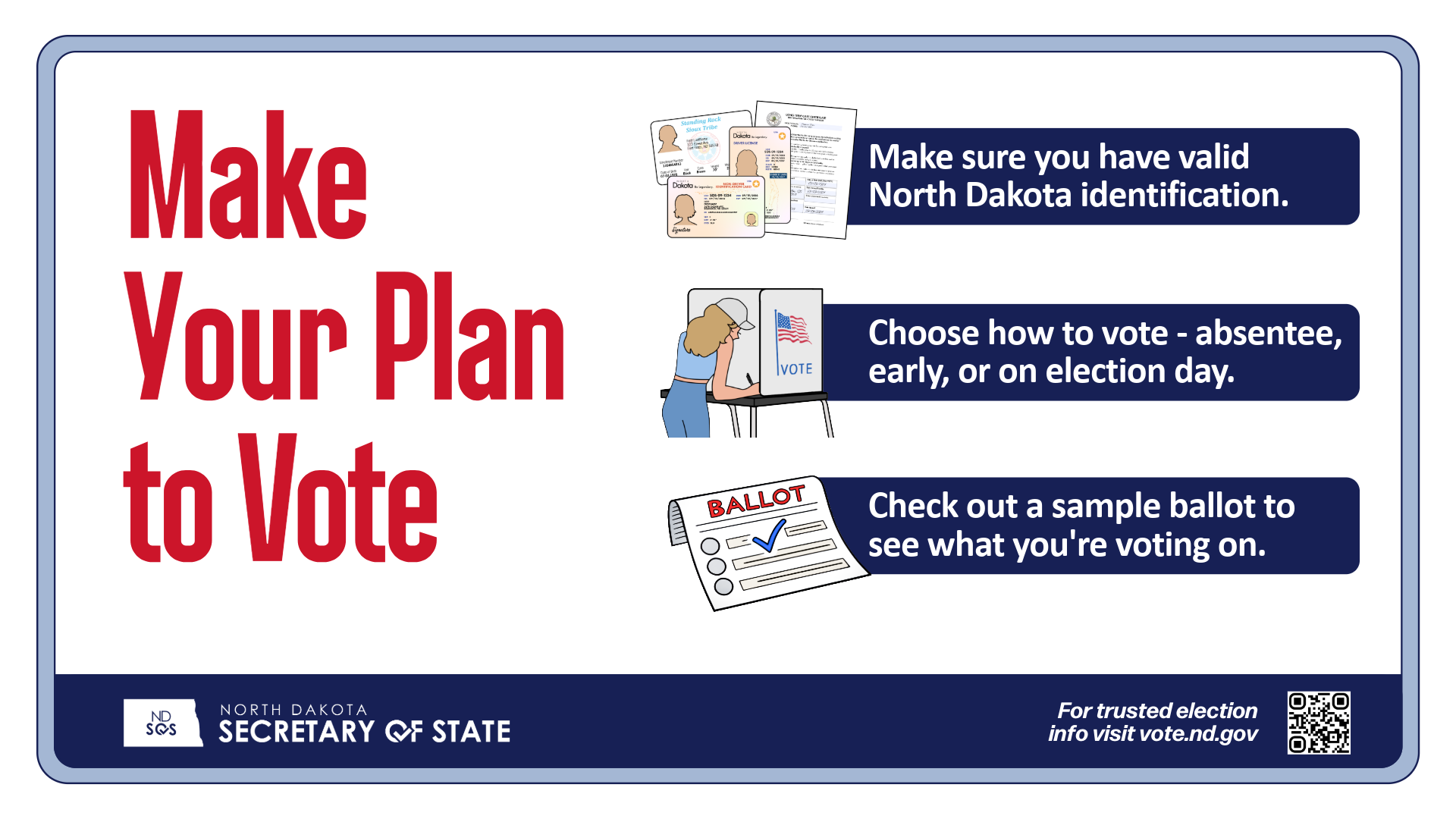 Make sure to take a look at the letter from Secretary Howe, showing his appreciation for your willingness to help share trusted information from our office about North Dakota elections. Please reach out to our office if you would like to request for Secretary Howe or another member of our team to speak to your group, and be sure to subscribe to receive toolkit updates and voter information that you can share throughout the election year!